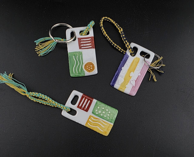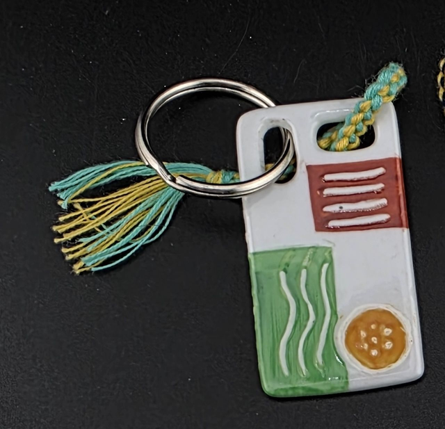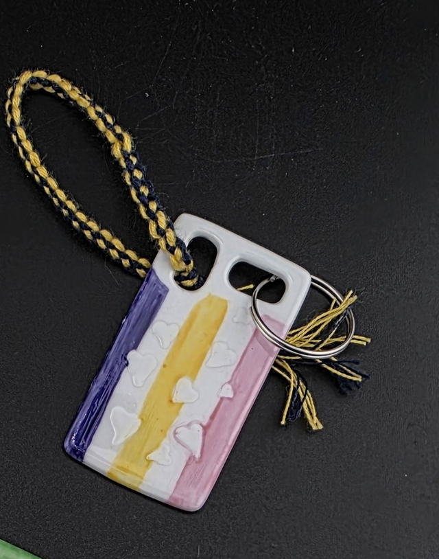 Porte-clés. Sa peinture en relief permet de l'utiliser comme objet de stimulation sensorielle dans une poche.